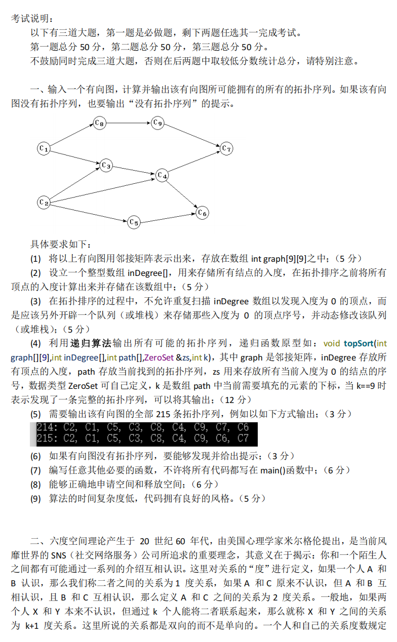 (5) 算法执行完毕,要以正确的方式释放动态申请的空间;(5分)