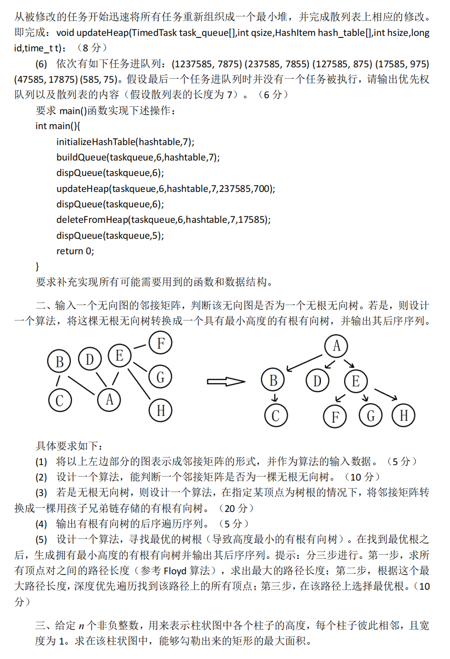 (10) 以本题所示的图中的树为数据,输出正确的H遍历的结果。(5分)