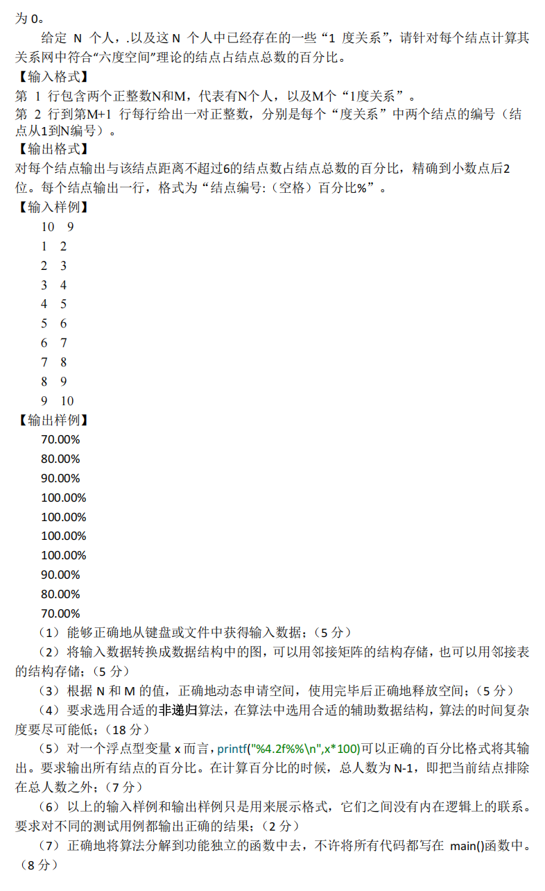 (5)   算法执行完毕,要以正确的方式释放动态申请的空间;(5分)