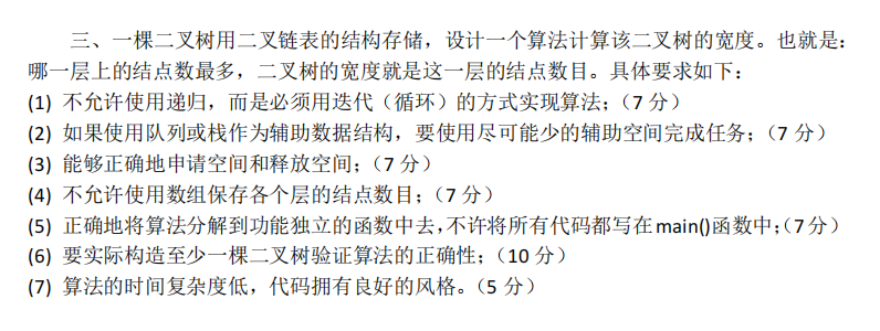 (3)   要求该算法是非递归算法,不允许使用递归。在算法中可以使用自定义的栈,也可以使用C/C++库中的栈。(5分)